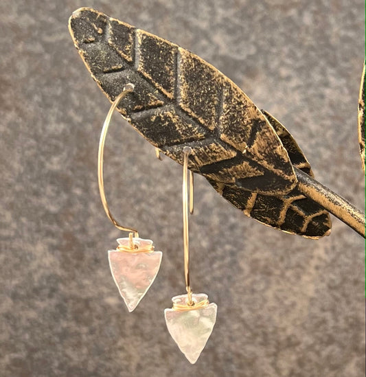 Hammered Bronze, Freshwater Pearl and Gold Earrings - Rustic Elegance