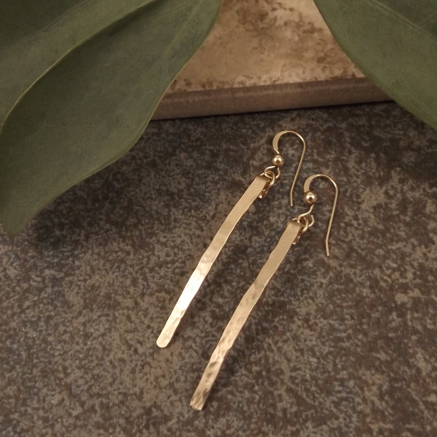 These Earrings have an elegantly rustic quality by combining textured/hammered Bronze Dangles...