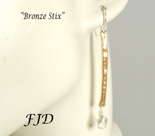 Sterling Silver, Hammered Bronze and Prehnite Earrings