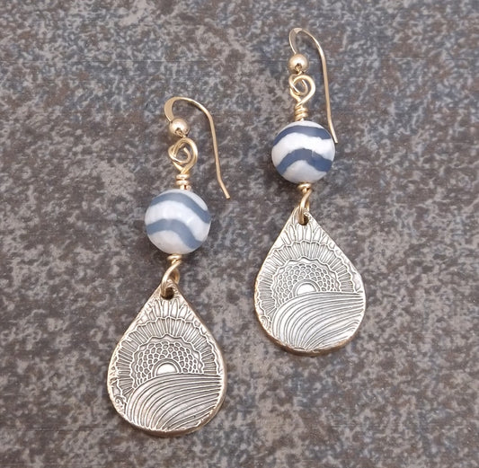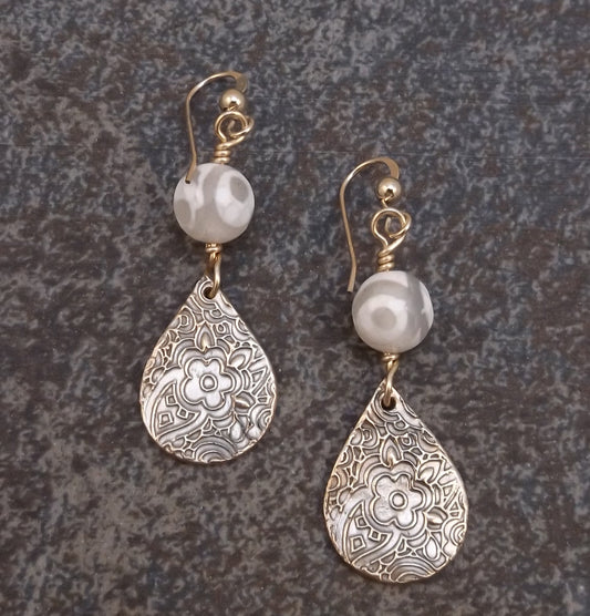 Bronze and Stone E- Gold Teardrop Earrings