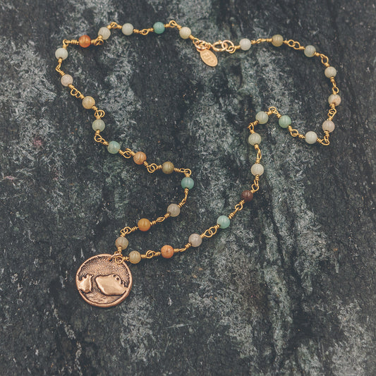 Brynn - Bronze Hoop and Amazonite Necklace