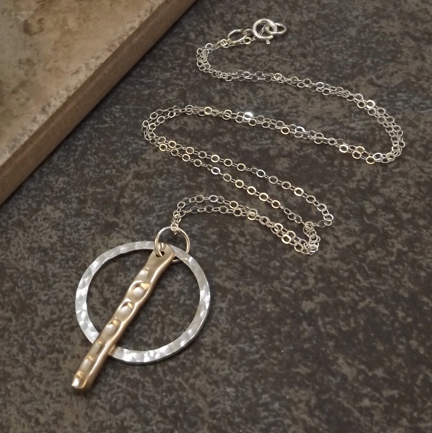 This mixed metal necklace is made of a handcrafted Pendant Sequence.
