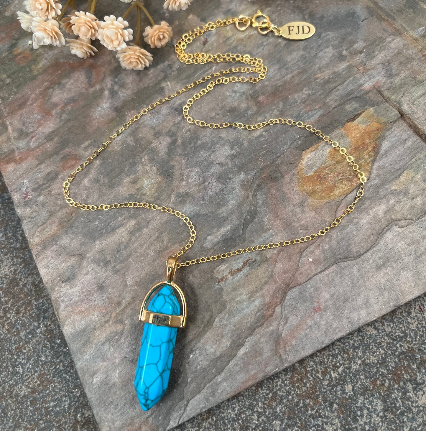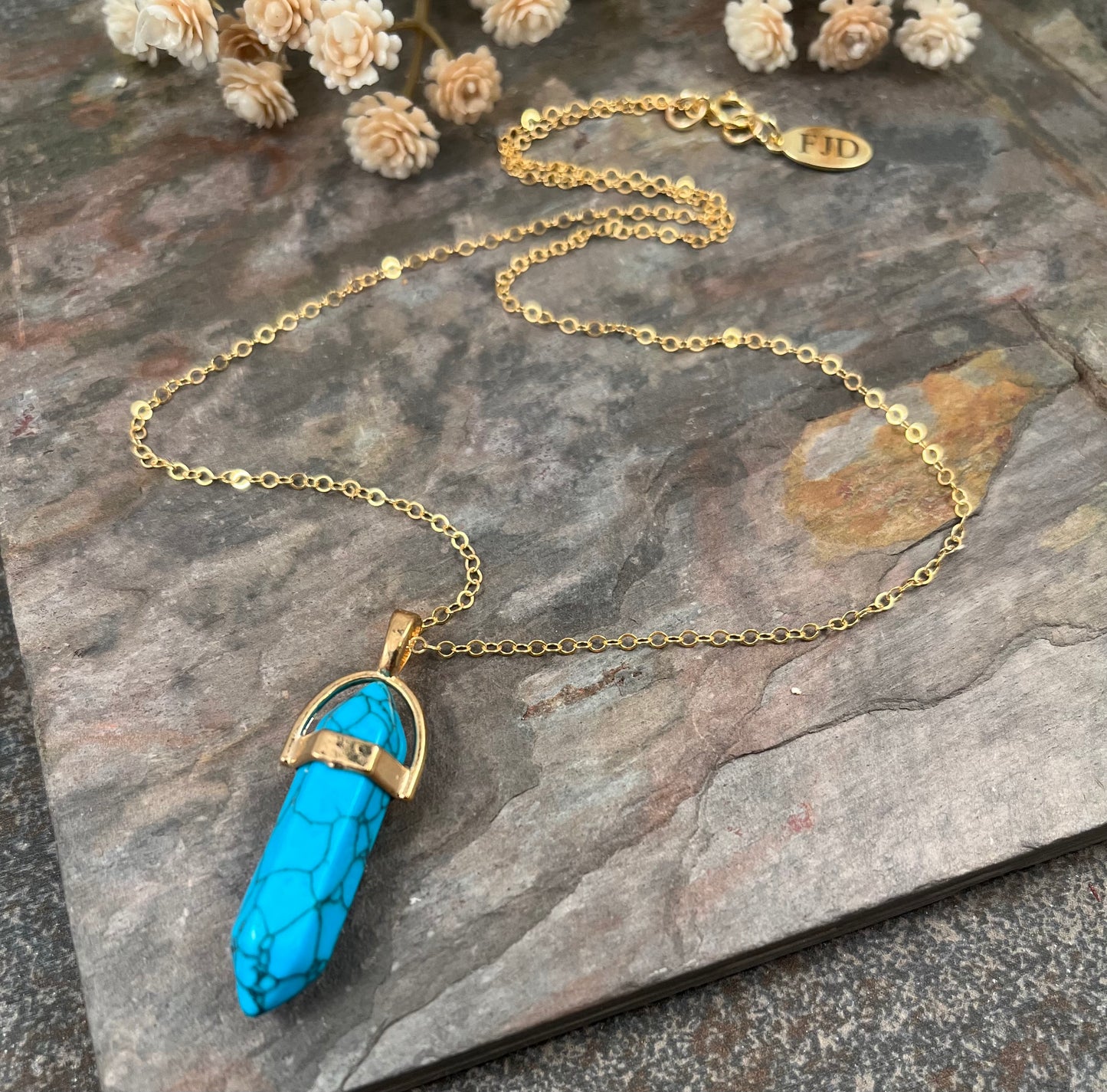 Just Breathe - Turquoise Dyed Howlite and Gold Filled Necklace
