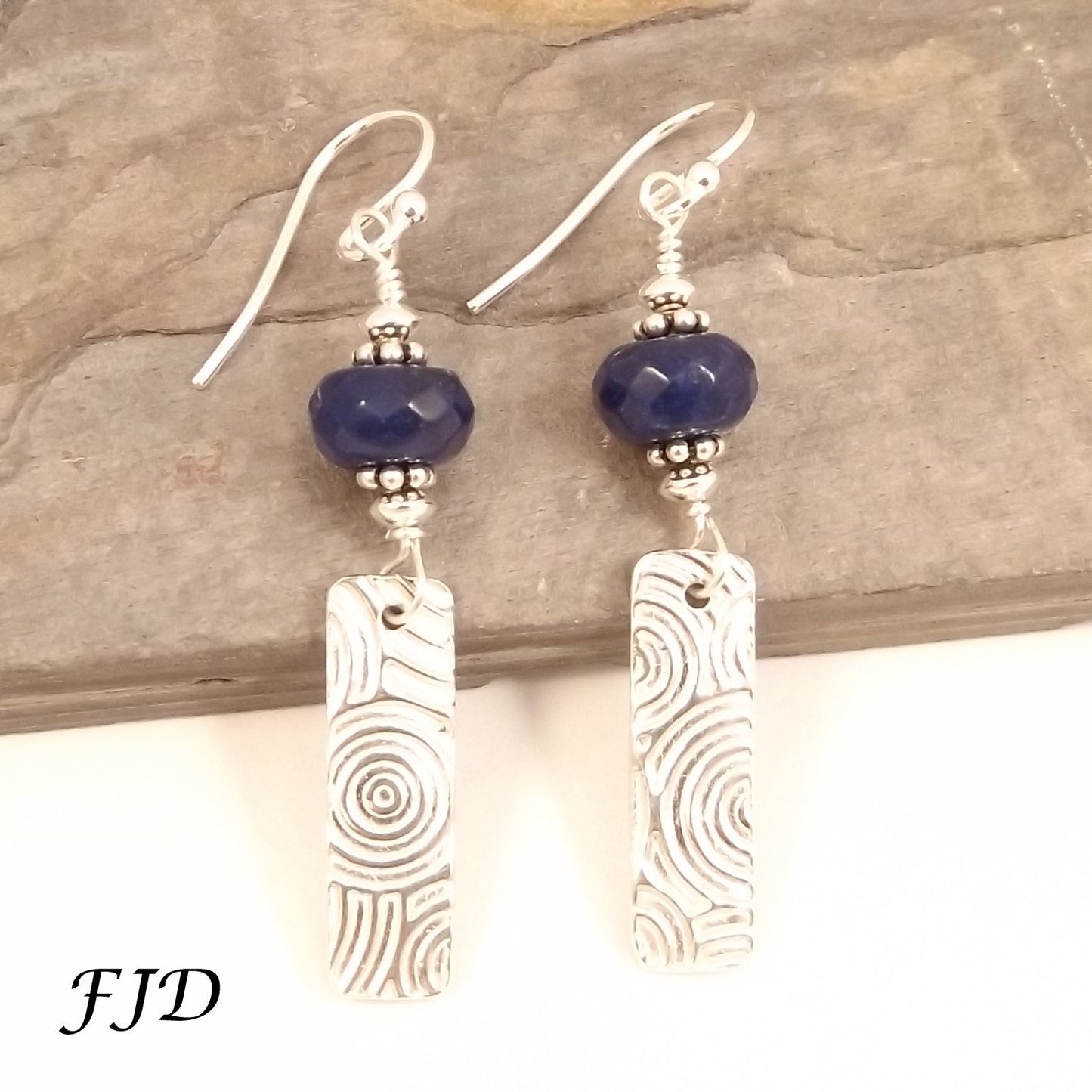 The rectangles sway beneath 7mm Dyed Jade rondelles and sterling silver elements. The ear wires are sterling silver French ear wires.