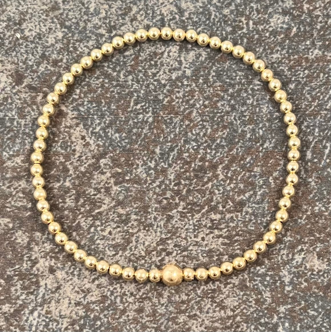 Stacking Bracelets - 3 mm Gold Bead Stretch Bracelet